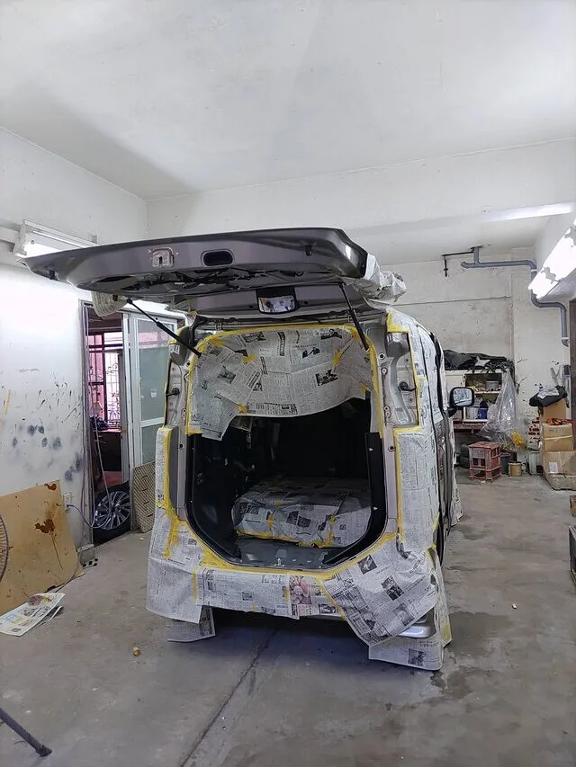 工場の一角で、車両が丁寧に新聞紙で覆われている様子を目にすると、